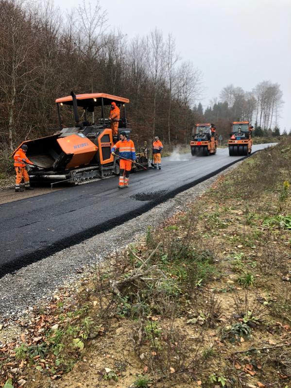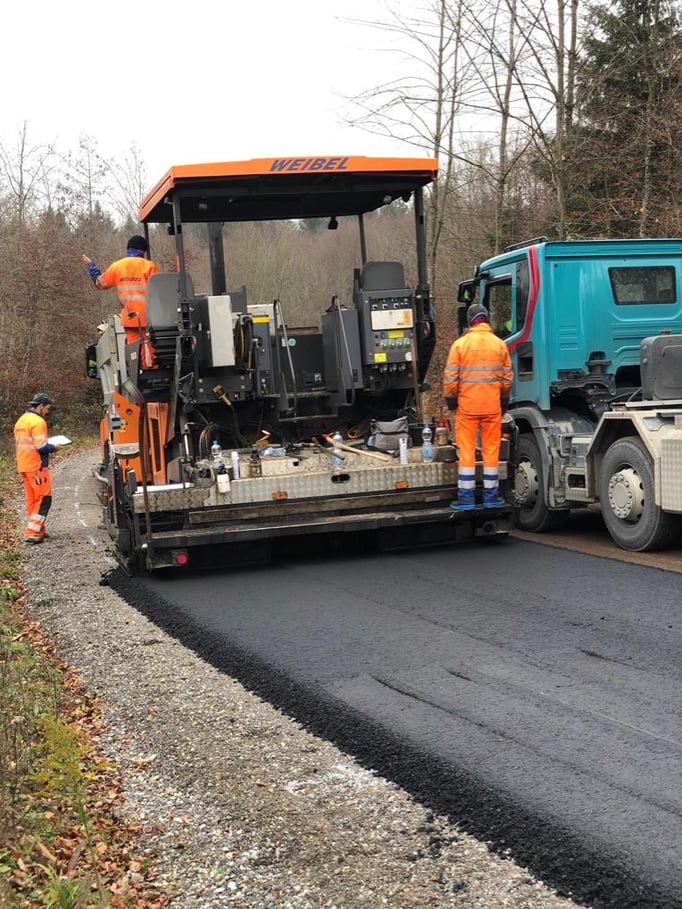 12.12.2019. Am Dezember 2019 führte das Bauunternehmen Weibel AG die Belagsarbeiten für die neue Güterstrasse zur Kiesgrube Challnechwald aus. Bei den umfangreichen Arbeiten wurden mit 15 Lastwagen rund 1700 Tonnen Asphaltbelag mit 100 % Recycling-Anteil verwendet. Dieser hohe RC-Anteil ist ein weiteres Pionierprojekt von Hurni und ein Commitment für die Wiederverwertung von wertvollen Rohstoffen.